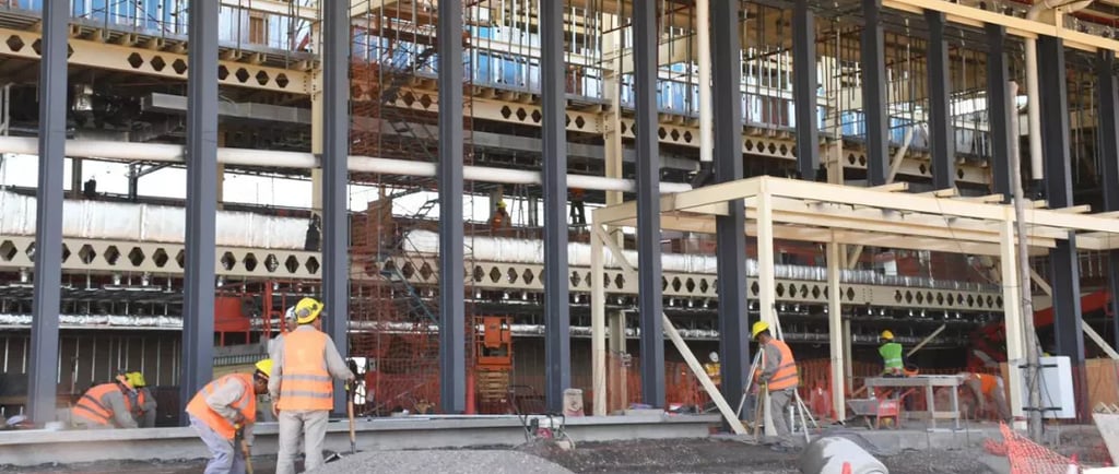El recorrido incluyó el avance de sectores clave como el nuevo hall principal de check-in, la sala de embarque doméstico ubicada en el primer piso y las áreas técnicas vinculadas a la operación aeroportuaria. Se completó la demolición de los sectores entre los ejes 7 y 13, abarcando 3.900 m², y ya se encuentran finalizadas las fundaciones del núcleo central, con un avance del 70% de la estructura metálica, mientras continúa la demolición del área comprendida entre los ejes 1 y 7.